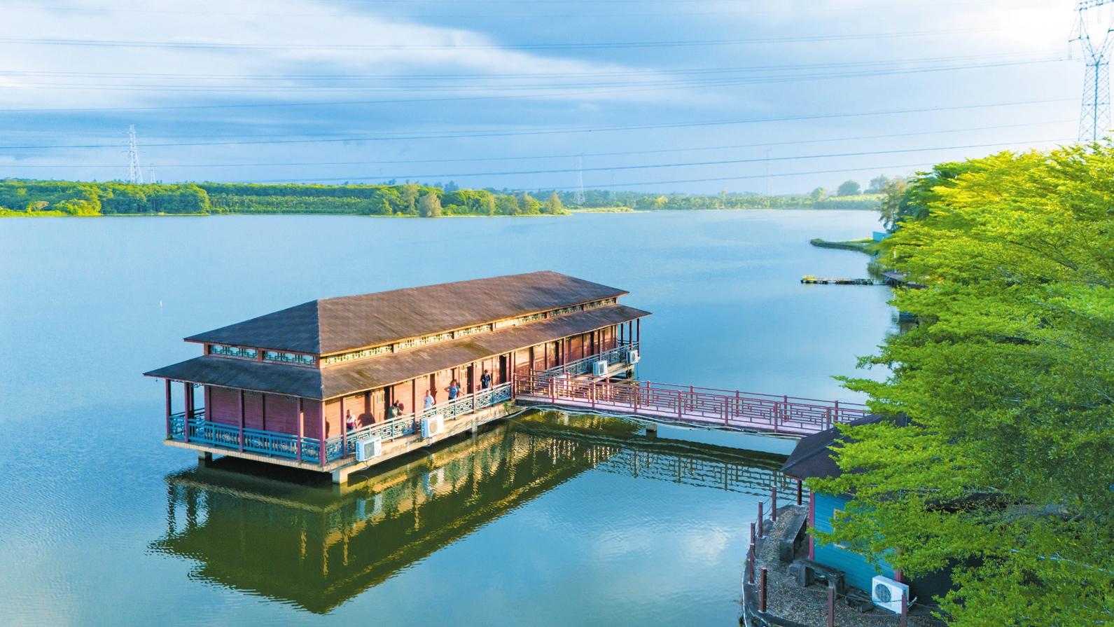 25日,走進位于龍華區(qū)新坡鎮(zhèn)的海口潭豐洋火山濕地農莊,一幅人與自然和諧共生的田園風景畫映入眼簾。在民宿區(qū)域,一座座獨棟木屋綠植環(huán)繞,屋檐懸掛著古色古香的燈籠,給人不一樣的感覺。潭豐洋火山濕地農莊負責人王作學介紹,通過濕地科普、團建露營、研學教育等方式,農莊吸引了越來越多人走進濕地、了解濕地、愛護濕地。