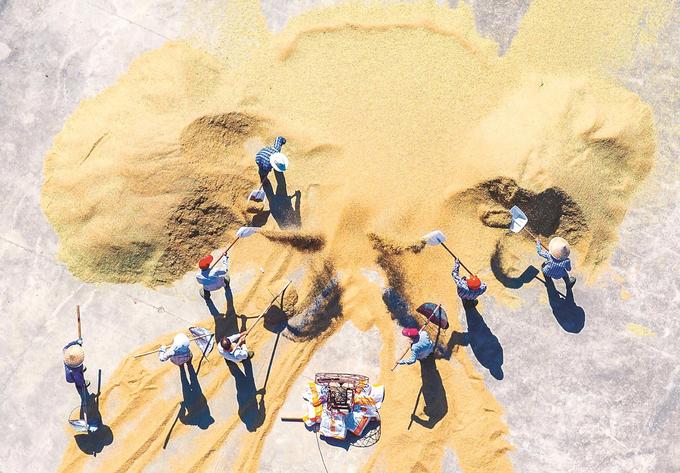 9月22日,泰州市海陵區(qū)紅旗街道,農(nóng)民在晾曬剛收割的制種水稻 湯德宏 攝