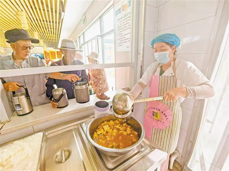 接過熱氣騰騰的飯菜,吳少山老伴的臉上洋溢著幸福的笑容?!懊罪?、兩菜一湯,天天不重樣,隔三岔五還能吃頓餃子,價(jià)格也實(shí)惠。”