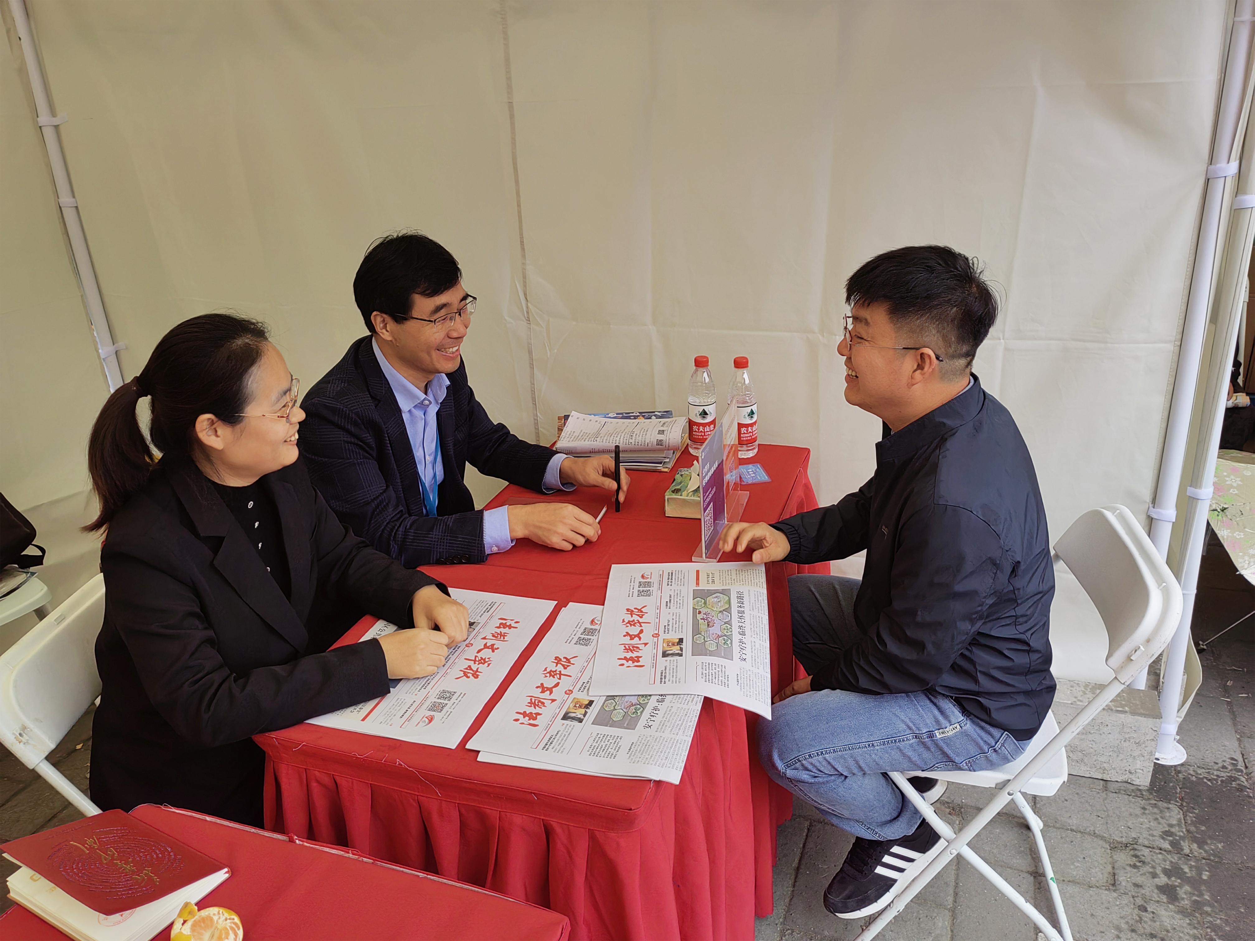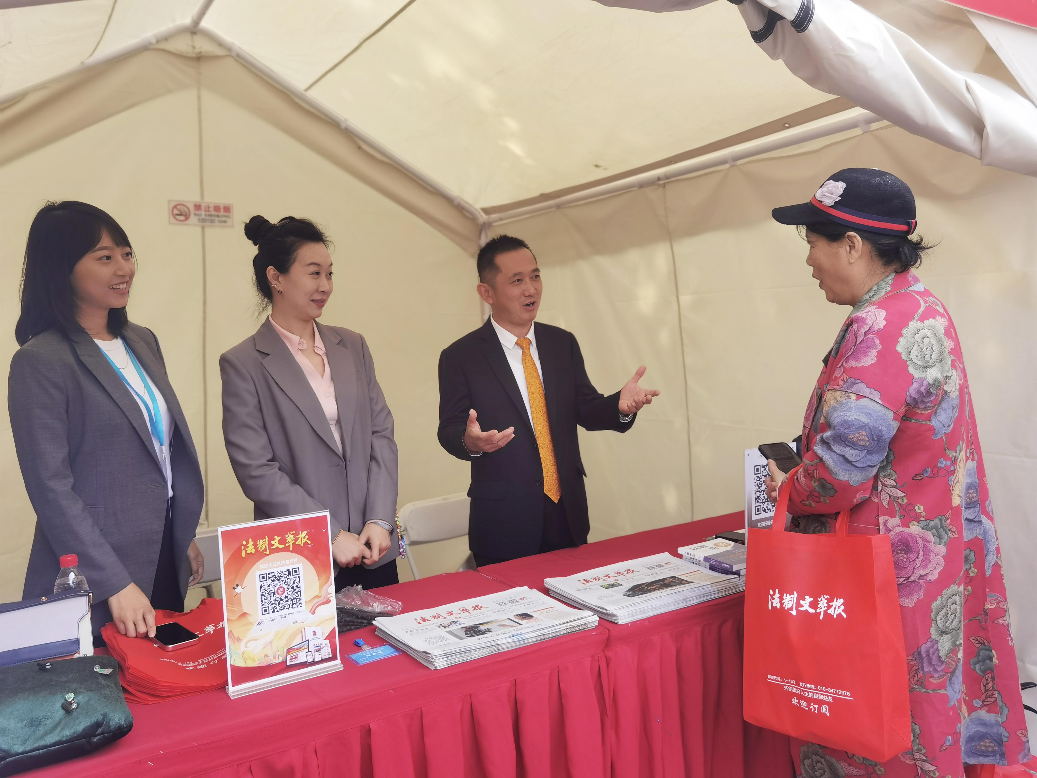 為推動(dòng)全民閱讀,法制文萃報(bào)對(duì)此次活動(dòng)做了充分準(zhǔn)備工作。在人頭攢動(dòng)的活動(dòng)現(xiàn)場(chǎng),法制文萃報(bào)活動(dòng)展區(qū)為讀者提供報(bào)刊贈(zèng)閱,精美集戳打卡、并為現(xiàn)場(chǎng)訂閱的讀者贈(zèng)送了精美禮物?!拔乙呀?jīng)訂閱報(bào)紙很多年了,很喜歡你們刊登的內(nèi)容,希望你們?cè)睫k越好!”展區(qū)前一位老人對(duì)工作人員說(shuō)。在現(xiàn)場(chǎng),讀者還與編輯面對(duì)面地交流,分享閱讀心得和體會(huì),進(jìn)一步增進(jìn)相互的了解和信任。