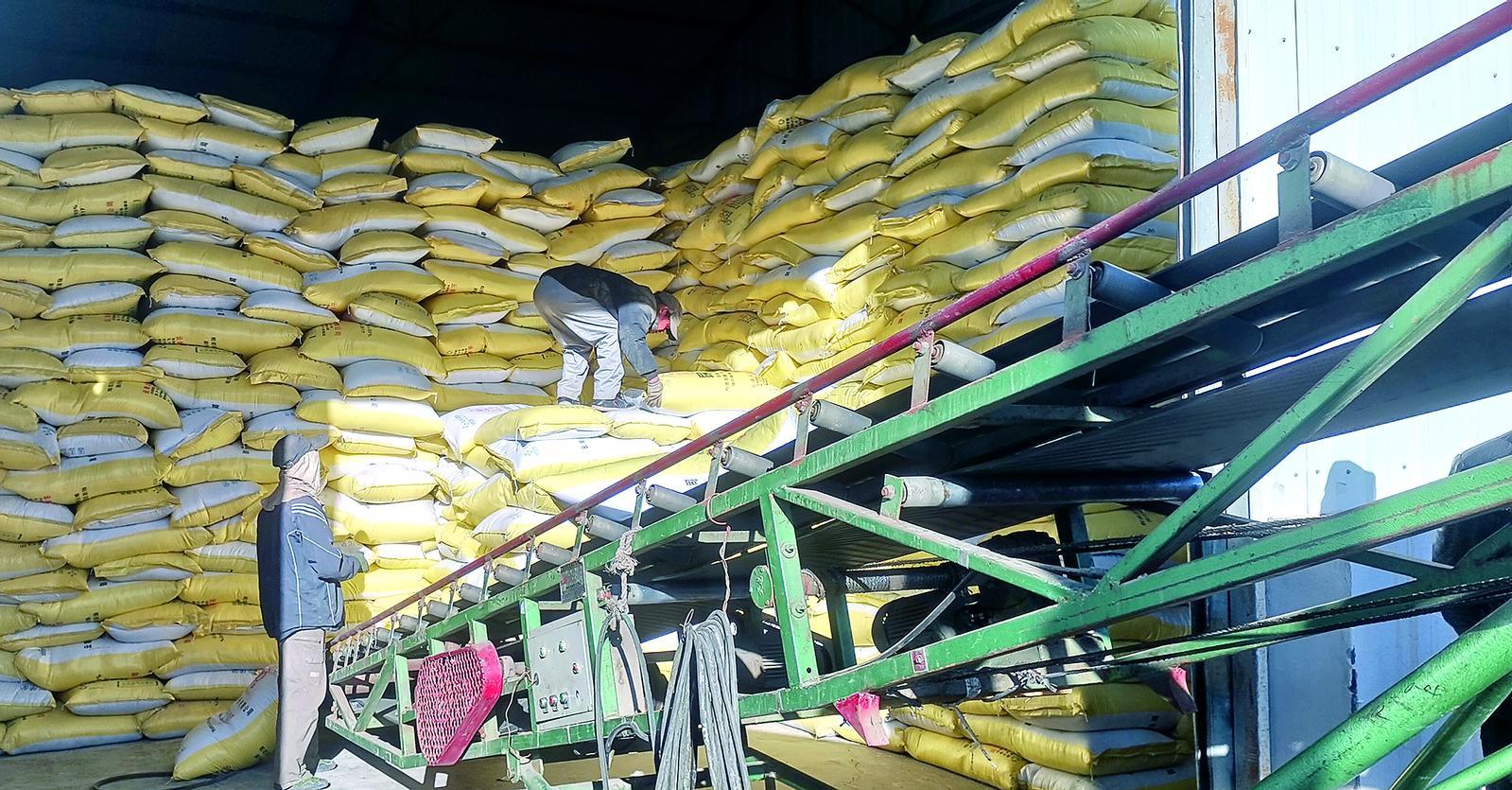 工人在搬運(yùn)化肥等生產(chǎn)資料 記者 丁玉梅 攝