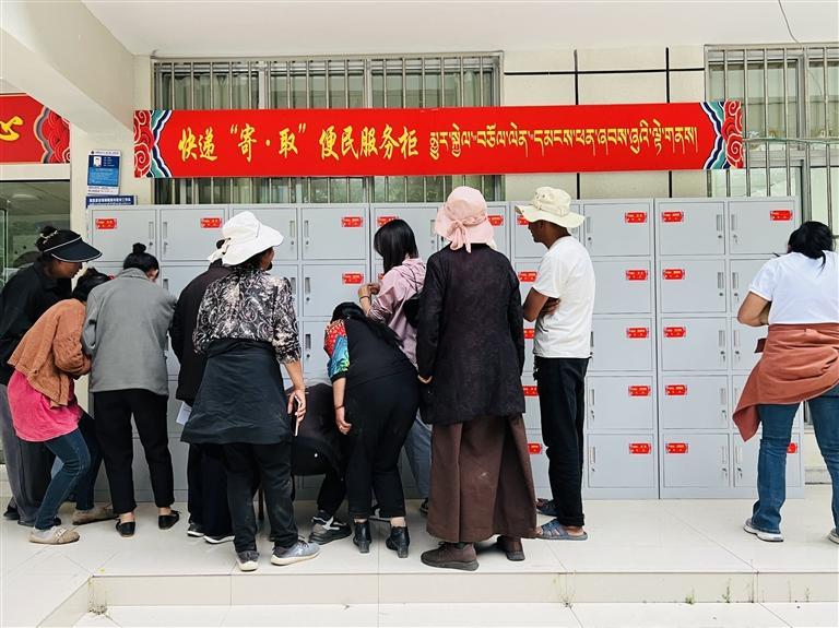 加查縣安繞鎮(zhèn)嘎堆村村民從快遞“寄·取”便民服務(wù)柜收取快遞記者 武沛濤 汪純 攝
