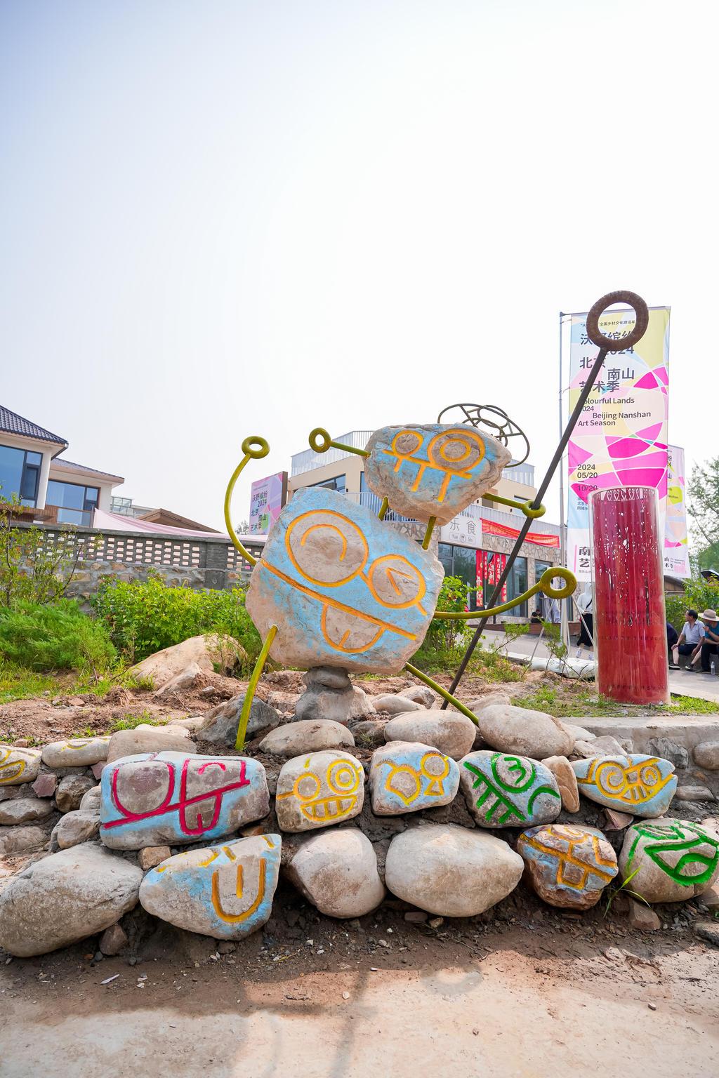 如今,南山村村口灰撲撲的石頭圍墻變成了一面豐收墻,大家把石頭涂畫成白菜、柿子、大桃等果蔬的樣子;清華美院在胡同安裝了交互感應(yīng)裝置,夜晚有人走過,就會(huì)投射出一只奔跑的夜光兔子;北京林業(yè)大學(xué)用玻璃飲料瓶復(fù)現(xiàn)了村里曾經(jīng)出土的文物石馬,名為《馬放南山》……環(huán)境變好了,加上南山藝術(shù)季的帶動(dòng)效應(yīng),村民的柿子、山里紅、核桃也都賣出去了,鄉(xiāng)村建設(shè)還讓村里的石匠、瓦工有了在家門口掙錢的機(jī)會(huì)。