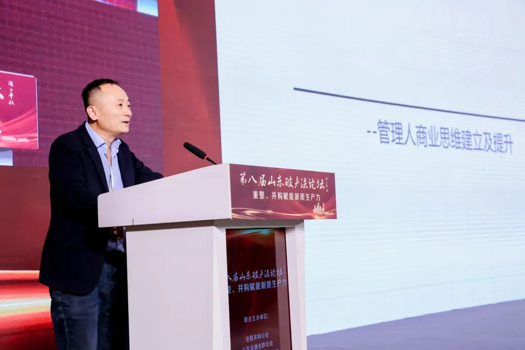 山東省不良資產(chǎn)處置協(xié)會(huì)李薇華會(huì)長在開幕致辭中對(duì)論壇的舉辦致以熱烈的祝賀。李薇華會(huì)長表示,黨的二十屆三中全會(huì)公報(bào)指出,高水平社會(huì)主義市場經(jīng)濟(jì)體制是中國式現(xiàn)代化的重要保障,要健全因地制宜發(fā)展新質(zhì)生產(chǎn)力的體制機(jī)制,發(fā)揮新質(zhì)生產(chǎn)力促進(jìn)技術(shù)革命性突破、生產(chǎn)要素創(chuàng)新配置以及產(chǎn)業(yè)深度的轉(zhuǎn)型升級(jí)的重要作用。除發(fā)現(xiàn)新質(zhì)生產(chǎn)力發(fā)展中的獨(dú)特價(jià)值之外,我們還應(yīng)對(duì)破產(chǎn)法在司法權(quán)運(yùn)行機(jī)制、金融機(jī)構(gòu)風(fēng)險(xiǎn)處置、國企并購擔(dān)當(dāng)?shù)确矫孢M(jìn)行前沿探索與深入實(shí)踐。破產(chǎn)法的實(shí)施,離不開社會(huì)各界的交流與合作、共同努力,法院、協(xié)會(huì)、企業(yè)、院校、投融資機(jī)構(gòu)及從業(yè)者要共同攜手、形成合力,推動(dòng)破產(chǎn)法制度的完善與實(shí)施。