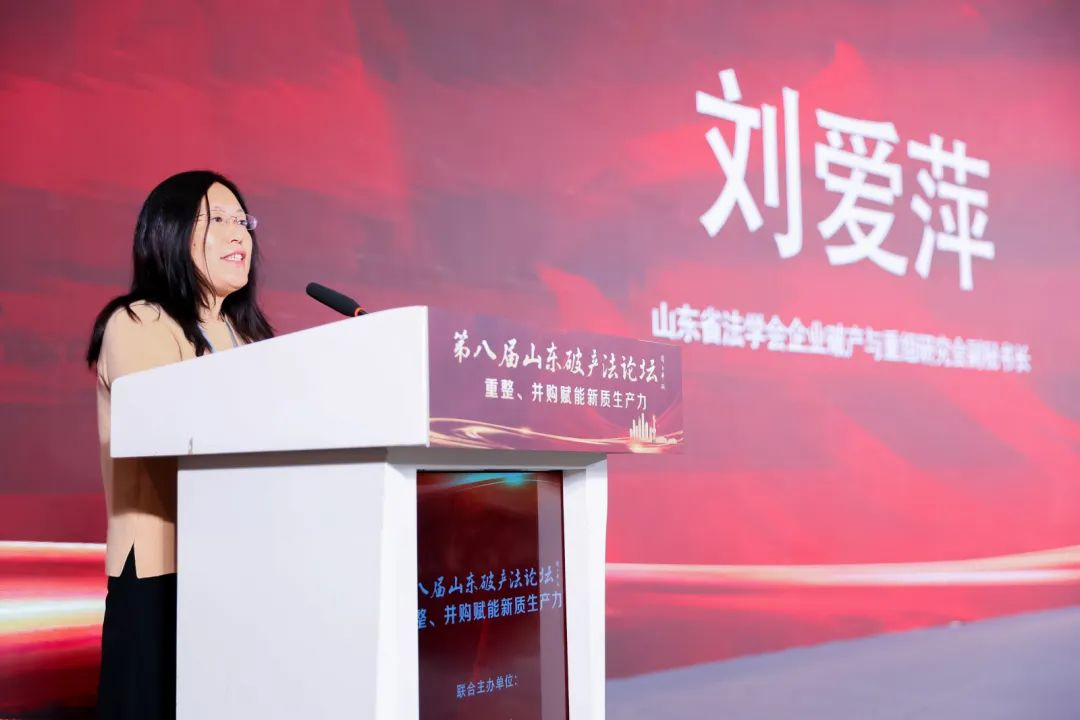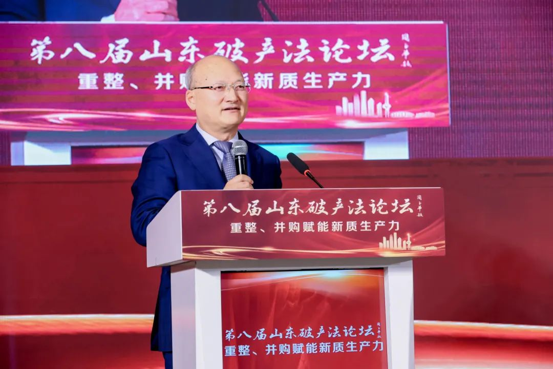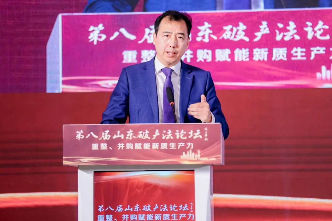 2024年11月10日,第八屆山東破產(chǎn)法論壇在濟(jì)南成功舉辦。本屆論壇由全聯(lián)并購公會(huì)、山東金融業(yè)聯(lián)合會(huì)、山東省不良資產(chǎn)處置協(xié)會(huì)、山東大學(xué)交叉法學(xué)研究院、浙江工商大學(xué)破產(chǎn)重組研究院、山東省法學(xué)會(huì)企業(yè)破產(chǎn)與重組研究會(huì)聯(lián)合主辦。本屆論壇緊緊圍繞“新質(zhì)生產(chǎn)力”的深刻內(nèi)涵,聚焦“重整并購賦能新質(zhì)生產(chǎn)力”這一核心主題展開研討。山東法學(xué)會(huì)企業(yè)破產(chǎn)與重組研究會(huì)名譽(yù)會(huì)長、山東省高級(jí)人民法院原院長周玉華;全國工商聯(lián)第十三屆常委、全聯(lián)并購公會(huì)會(huì)長尉立東;山東金融業(yè)聯(lián)合會(huì)秘書長何修崟;山東省不良資產(chǎn)處置協(xié)會(huì)會(huì)長李薇華;中國法學(xué)會(huì)世界貿(mào)易組織法研究會(huì)副會(huì)長兼秘書長、中國人民大學(xué)特聘教授石靜霞;華東政法大學(xué)國際金融法律學(xué)院教授、浙江省高級(jí)人民法院原民二庭庭長章恒筑出席開幕式。山東省法學(xué)會(huì)企業(yè)破產(chǎn)與重組研究會(huì)會(huì)長劉平主持開幕式。全國工商聯(lián)第十三屆常委、全聯(lián)并購公會(huì)會(huì)長尉立東,山東省不良資產(chǎn)處置協(xié)會(huì)會(huì)長李薇華在開幕式上致辭演講。6位主旨演講嘉賓、28位主題演講嘉賓圍繞各主題、議題,展開了為期一天的深入研討。全聯(lián)并購公會(huì)副會(huì)長、山東省法學(xué)會(huì)企業(yè)破產(chǎn)與重組研究會(huì)副會(huì)長兼秘書長、山東華信清算重組集團(tuán)有限公司董事長提瑞婷作閉幕致辭。
