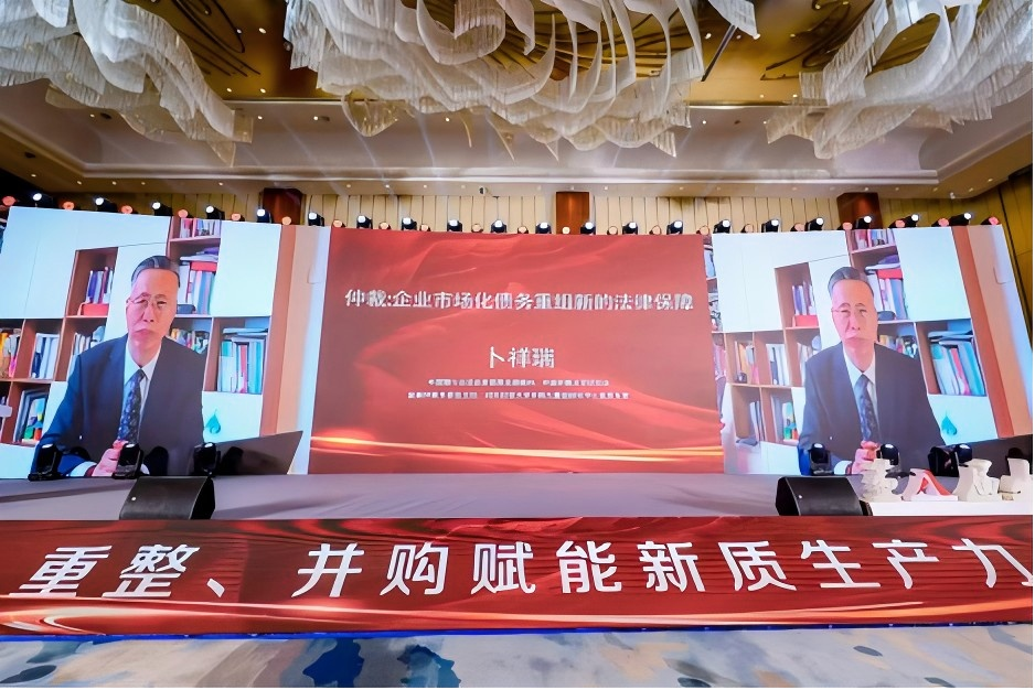 中國銀行業(yè)協(xié)會(huì)原首席法律顧問、中國仲裁法學(xué)研究會(huì)金融仲裁專委會(huì)主任、對(duì)外經(jīng)貿(mào)大學(xué)并購與重組研究中心首席專家卜祥瑞的發(fā)言題目為《仲裁:企業(yè)市場化債務(wù)重組新的法律保障》。卜祥瑞主任分析了仲裁在市場化債務(wù)重組中的作用,深入探討了仲裁機(jī)制如何為企業(yè)提供更加靈活、高效的爭議解決方案。他還分享了在當(dāng)前經(jīng)濟(jì)環(huán)境下,企業(yè)如何利用仲裁手段優(yōu)化債務(wù)結(jié)構(gòu),降低重組成本,從而保障債權(quán)人和債務(wù)人權(quán)益的同時(shí),維護(hù)金融市場的穩(wěn)定。最后,他提出在重整并購過程中,仲裁作為一種非訴訟解決爭議的方式,如何與司法程序相輔相成,共同促進(jìn)企業(yè)債務(wù)重組順利進(jìn)行的解決思路。