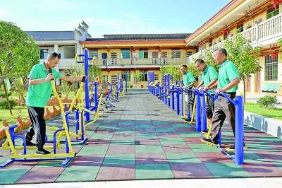 江西金溪縣瑯琚鎮(zhèn)養(yǎng)老服務(wù)中心內(nèi),老人們?cè)阱憻捝眢w 鄧興東 攝