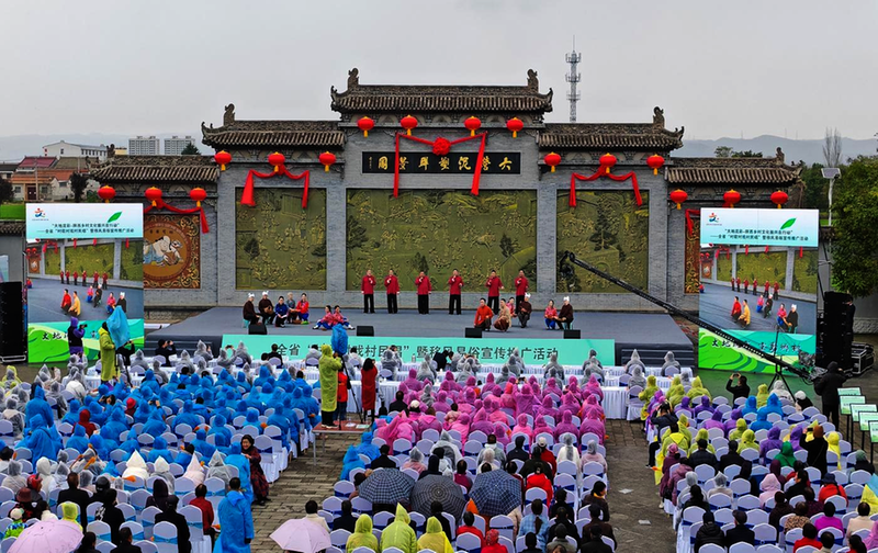 活動(dòng)現(xiàn)場(chǎng),近千余名干部群眾齊聚雍城,百余名農(nóng)民群眾唱得響亮,氣氛熱烈。一曲《相約龍頭村》唱出了對(duì)家鄉(xiāng)的熱愛(ài)和贊美,拉開(kāi)了活動(dòng)序幕。由村民自編自導(dǎo)自演的歌曲、舞蹈、戲曲、鼓樂(lè)等拿手好戲連番登臺(tái),原汁原味演繹了農(nóng)民群眾的生產(chǎn)生活,為現(xiàn)場(chǎng)的觀眾帶來(lái)了一場(chǎng)精彩絕倫的視聽(tīng)盛宴,讓群眾在家門(mén)口樂(lè)享了鄉(xiāng)土味、煙火氣十足的文化大餐,實(shí)現(xiàn)了“群眾看戲”和“群眾演戲”的完美結(jié)合。歌伴舞《大地流彩靈動(dòng)鄉(xiāng)村》唱出了新時(shí)代廣大農(nóng)民群眾追求幸福、昂揚(yáng)向上的精神風(fēng)貌,《百善孝為先》《家風(fēng)》《紅棗棗》《我想能我想篩》《在希望的田野上》等歌曲,旋律時(shí)而宛轉(zhuǎn)悠揚(yáng)、空靈曼妙,時(shí)而激昂澎湃、振奮人心,時(shí)而舒緩低沉、柔情似水,每一個(gè)音符都在訴說(shuō)著鄉(xiāng)音,每一曲都飽含著對(duì)三秦大地深沉的愛(ài),余音繞梁。廣場(chǎng)舞《泥塑人家》和戲劇《秦瓊觀陣》,充分展示了國(guó)家級(jí)非物質(zhì)文化遺產(chǎn)名錄鳳翔泥塑、杖頭木偶的無(wú)限魅力。石家木偶戲、眉戶現(xiàn)代小戲《十二把鐮刀》、西府曲子《表花》、華陰老腔《華陰老腔一聲喊》和鎮(zhèn)安漁鼓《喜看碩果滿枝頭》等地方曲目,全面展現(xiàn)了極具陜西特色、富有農(nóng)趣農(nóng)味的傳統(tǒng)民俗文化和民間藝術(shù),也彰顯了鄉(xiāng)村全面振興的顯著成就,鄉(xiāng)村文化真真正正融入到群眾的“心坎里”。活動(dòng)過(guò)程中,西北農(nóng)林科技大學(xué)學(xué)生代表宣讀了“大學(xué)生服務(wù)鄉(xiāng)村文化振興”倡議書(shū),志愿者代表交流分享了推進(jìn)農(nóng)村移風(fēng)易俗經(jīng)驗(yàn),《大愛(ài)》《家有喜事》以群眾喜聞樂(lè)見(jiàn)的形式進(jìn)行移風(fēng)易俗宣傳,打通了理論宣講面向群眾、服務(wù)群眾的“最后一公里”。