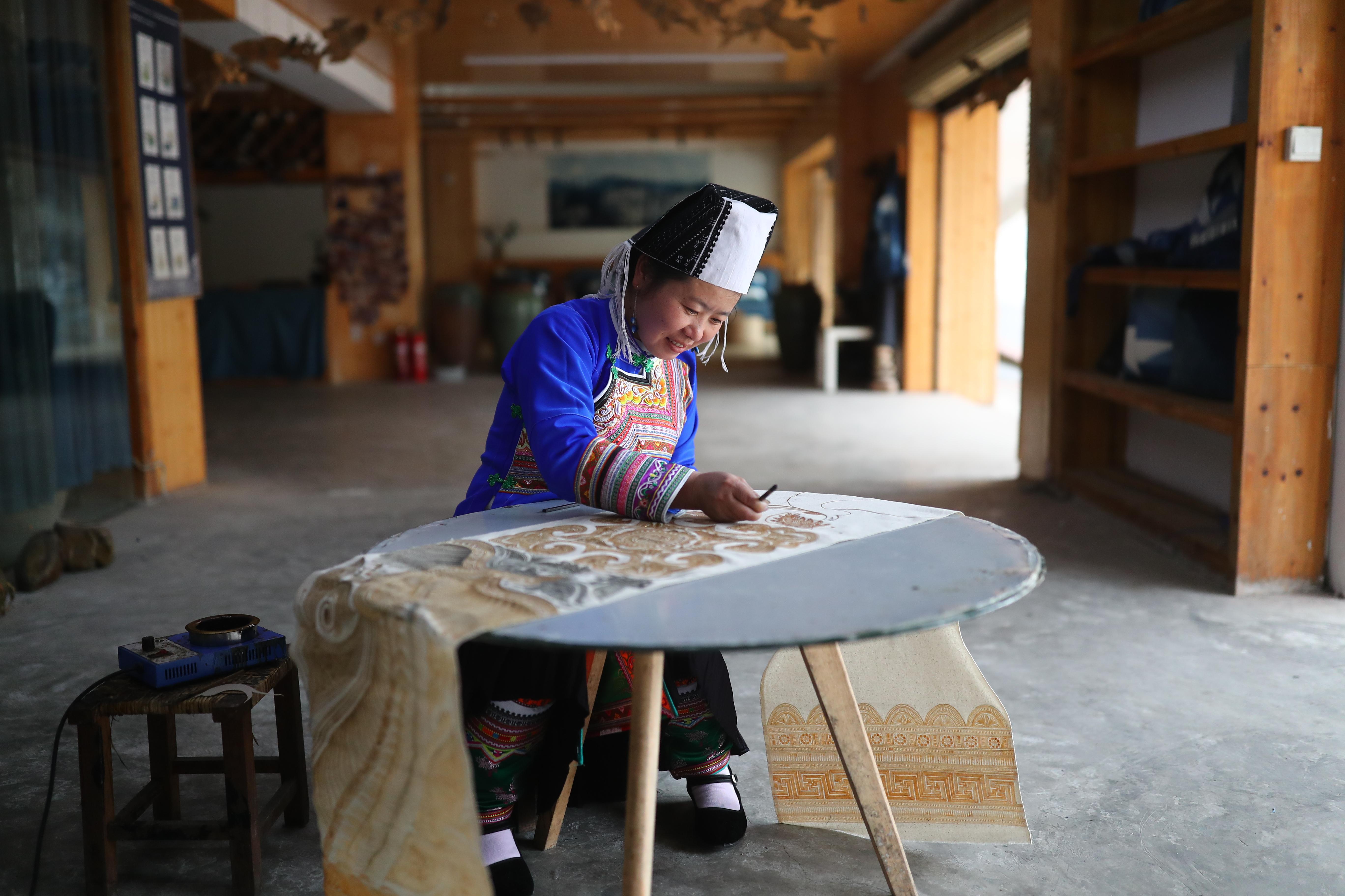在貴州省黔西市化屋村,學(xué)習(xí)蠟染、刺繡等非遺技藝,改變了彭藝和苗寨的命運(yùn)。