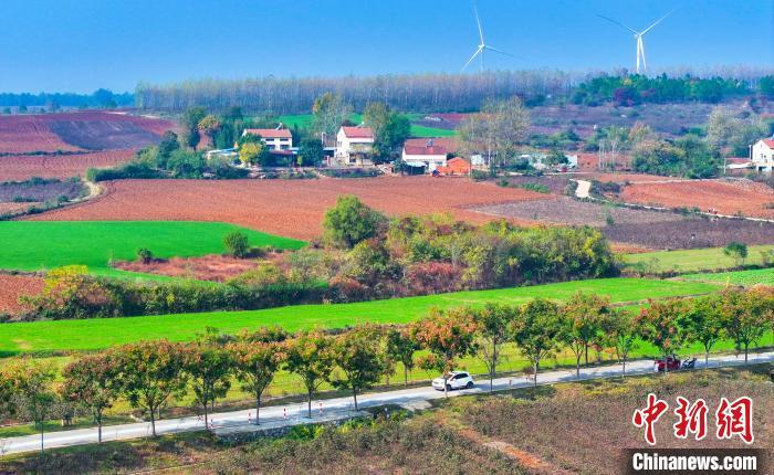 初冬時節(jié),驅(qū)車駛?cè)牒笔∫顺鞘薪鹆_線,阡陌通途,不少市民游客沿公路騎行打卡,一路歡歌而上。