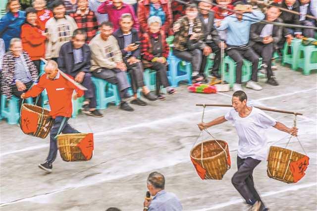 2023農(nóng)民豐收節(jié)上,鹽井村村民在進(jìn)行挑糧接力比賽(受訪者供圖)