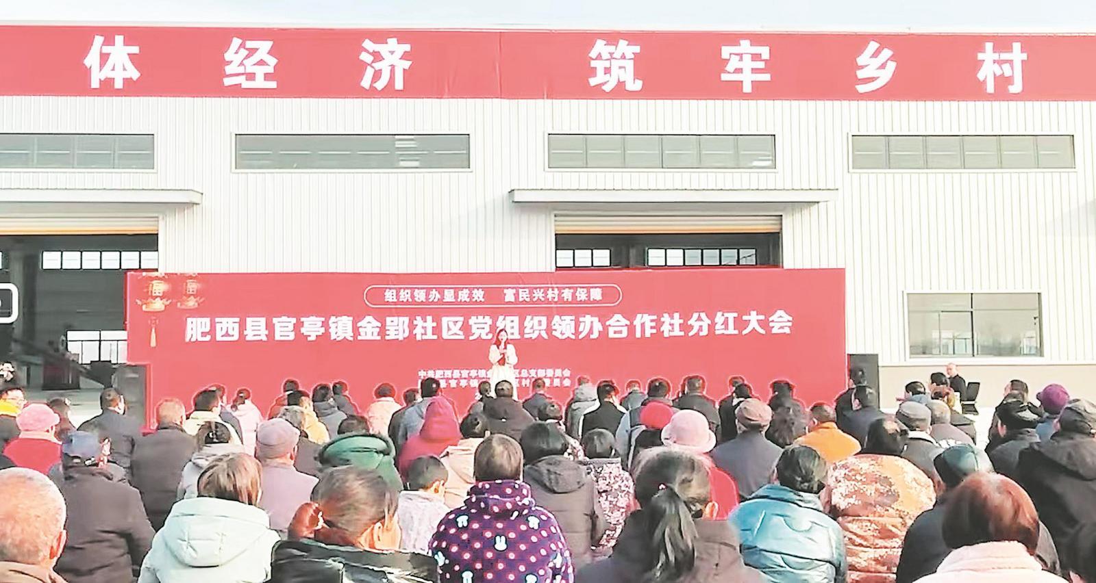 肥西縣官亭鎮(zhèn)金郢社區(qū)黨組織領辦合作社開展分紅活動(圖片由肥西縣委組織部提供)