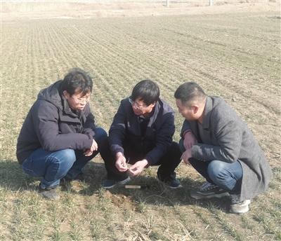 寶坻區(qū)農(nóng)業(yè)發(fā)展服務中心專家下田了解土壤墑情和小麥苗情(資料片)
