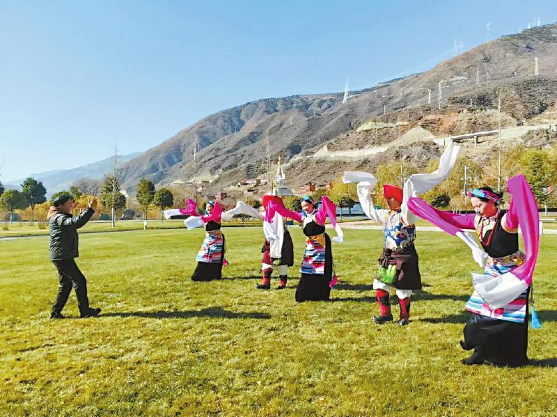 弦子舞跳進(jìn)全國春節(jié)“村晚”,非遺火熱“出圈”,是巴塘縣多年努力的成果?!跋易游枨陙硪揽靠趥餍氖诘姆绞絺鞒?,沒有具體樂譜。為保護(hù)傳承這一非物質(zhì)文化遺產(chǎn),我們將弦子編入學(xué)校課間操,并成立弦子數(shù)據(jù)庫,目前已收集661張圖片、182組詞、244組曲、608首音頻、402個視頻?!卑吞量h文化廣播電視和旅游局副局長童玲介紹。