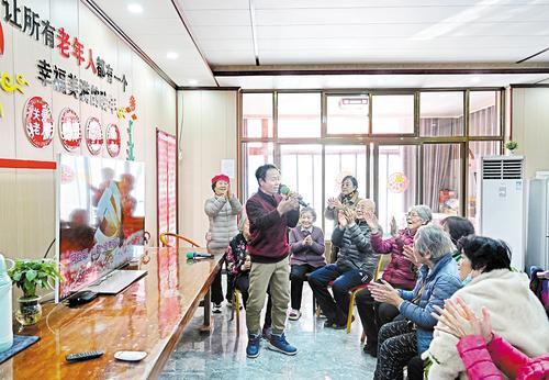 1月21日,位于淶水縣北郭下村的一座養(yǎng)老院內(nèi),老人們聚在一起唱歌娛樂。記者 張昊 攝