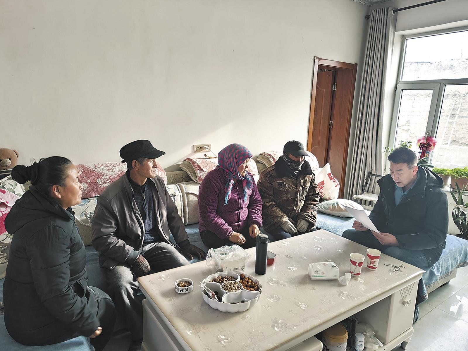 “鄉(xiāng)親們,今天咱們開展‘一宣三促’活動,喧一喧一號文件精神,比如說‘大力發(fā)展綠色、特色農(nóng)產(chǎn)品種養(yǎng),推進(jìn)農(nóng)產(chǎn)品加工業(yè)轉(zhuǎn)型升級,實施農(nóng)業(yè)品牌精品培育計劃,打造特色農(nóng)業(yè)產(chǎn)業(yè)集群,提升農(nóng)業(yè)產(chǎn)業(yè)化水平’這一條,對咱們農(nóng)民來說是開春以來的大喜訊?!?月24日一大早,青海省海東市民和回族土族自治縣巴州鎮(zhèn)祁家村村委會掛起了“一宣三促”橫幅,駐村第一書記孔德香和群眾自備小板凳相聚在村廣場上,拉開了“板凳課堂”的序幕。