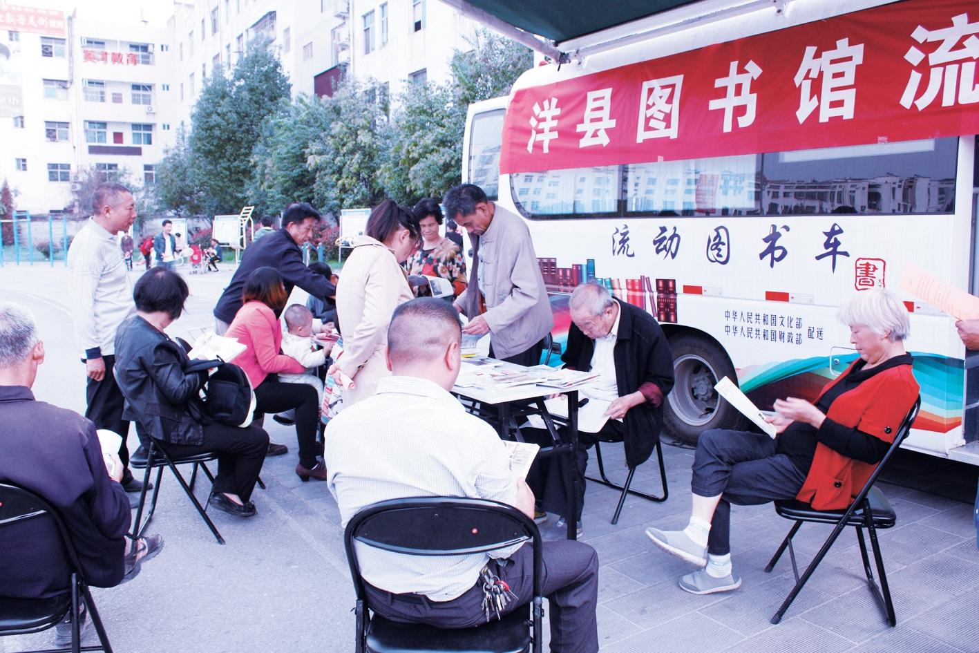 洋縣流動圖書車走進社區(qū)(洋縣文化和旅游局供圖)
