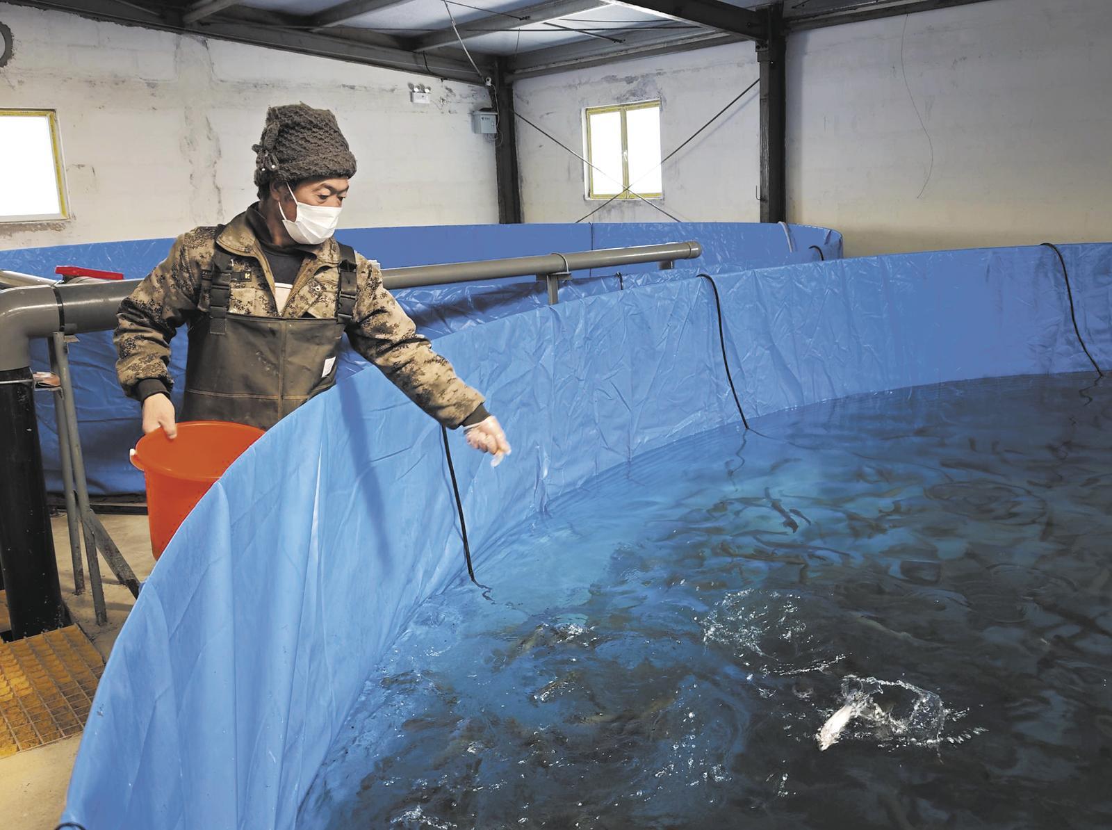 基地負責人楊光介紹,目前池子里正茁壯成長著約2萬尾虹鱒魚,經(jīng)過近10個月的精心喂養(yǎng),目前每條重量達到一斤左右?!邦A計在今年年底,這些魚將被出售,按照當前的市場價格估算,銷售額達到300多萬元。此外,基地還有5萬尾鱸魚,也將在今年6月出售?!?/p>