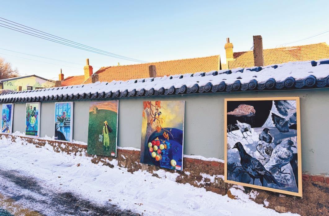 在鐵嶺市熊官屯鎮(zhèn)熊官屯村齊家溝的“畫家村”內(nèi),畫家們在冰天雪地中舉辦戶外畫展。