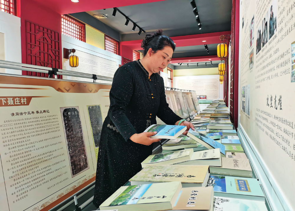 鹿泉村志編寫(xiě)陳列館的工作人員正在整理各村編寫(xiě)的村志(2025年3月25日攝)翟磊 攝
