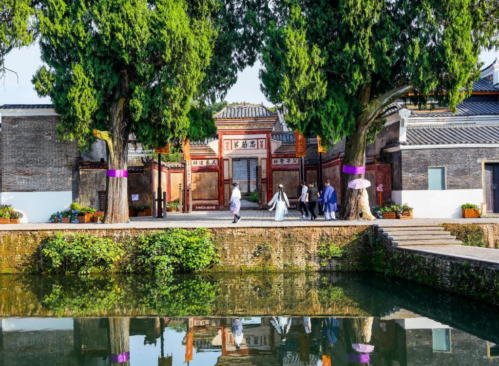 吉安古稱廬陵,釣源古村因歷史上交通便利、物阜民豐,鼎盛時期被稱為廬陵“小南京”。從高處俯瞰,古村規(guī)劃根據(jù)地勢高低順勢而為,以八卦布局,疏密有致、移步換景。村內有150棟明清贛派建筑,道路整潔、流水清澈,青磚黛瓦被2.6萬余棵古樟樹環(huán)繞。