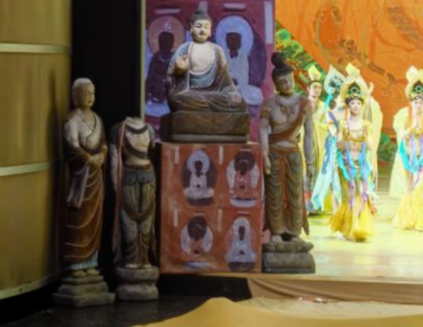 舞劇《大夢(mèng)敦煌》以敦煌盛大輝煌、悠久燦爛的歷史文化為背景。圖為舞臺(tái)一隅。馬霞 攝