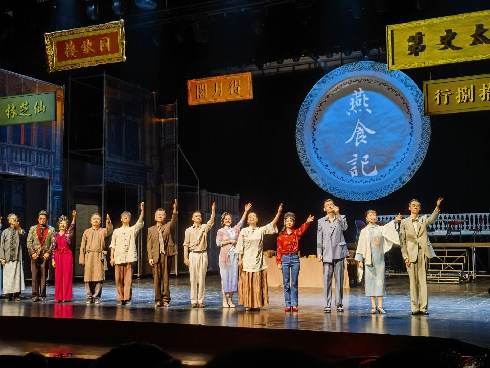 演員謝幕。5月21日至25日,話劇《燕食記》在國家話劇院劇場成功完成首輪演出。馬霞 攝