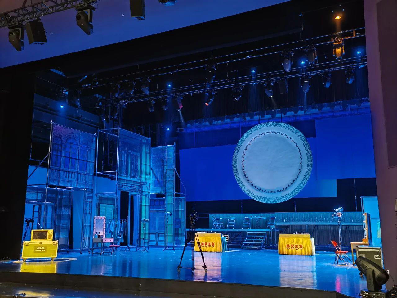 舞臺上采用廣彩瓷紋樣投影,時現(xiàn)字幕或特寫,延伸了舞臺表演;亦堪當電視屏幕,是師徒名廚爭霸現(xiàn)場;更是一輪圓月,時代風云際會,日中與夕食,月下共朝歌。有無相生間,承載的是中國人的道理。