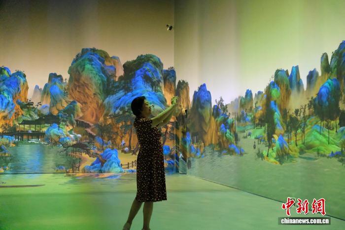 2025年7月,游客在中國(guó)歷代繪畫(huà)大系典藏館體驗(yàn)“光影丹青”項(xiàng)目。曹丹 攝