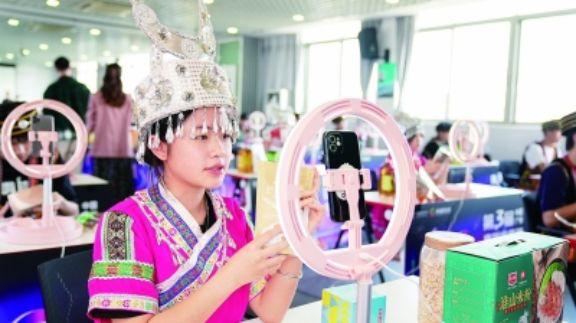 經(jīng)過幾年的發(fā)展,如今潘曉優(yōu)的公司年收入達(dá)500萬元,并帶動了當(dāng)?shù)貗D女就業(yè)。產(chǎn)品需要包裝時,她會請社區(qū)的阿姨們一起幫忙,后者一天能有近百元的收入。潘曉優(yōu)告訴記者,公司如今是“三都縣城南社區(qū)巾幗眾創(chuàng)空間”,在當(dāng)?shù)貗D聯(lián)的支持下建有一個小直播間,可以為有需要的人提供直播帶貨的場地,也可以培訓(xùn)直播帶貨人才。
