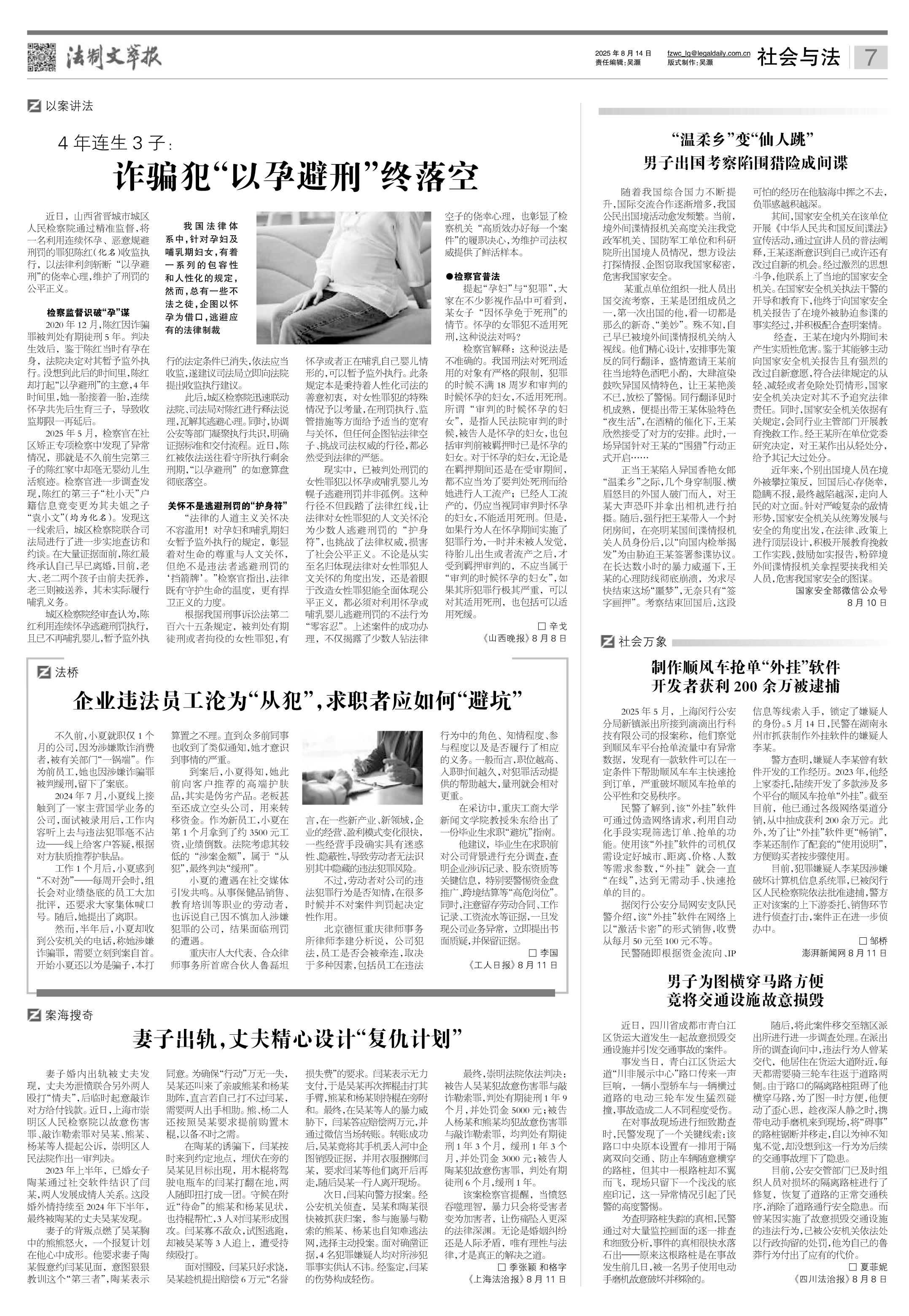 2025年8月14日《法制文萃報》總第2868期7版