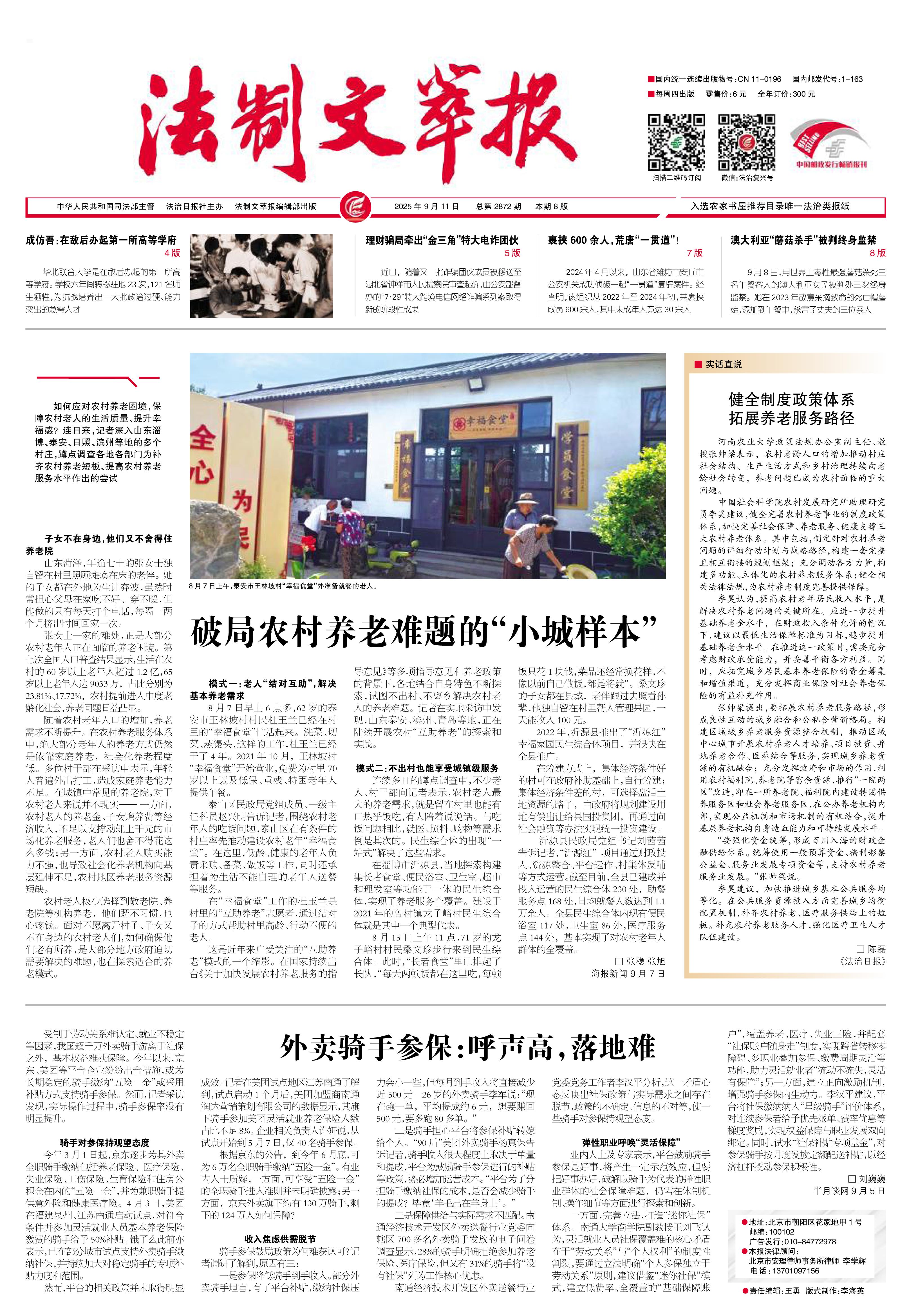 2025年9月11日《法制文萃報》總第2872期1版