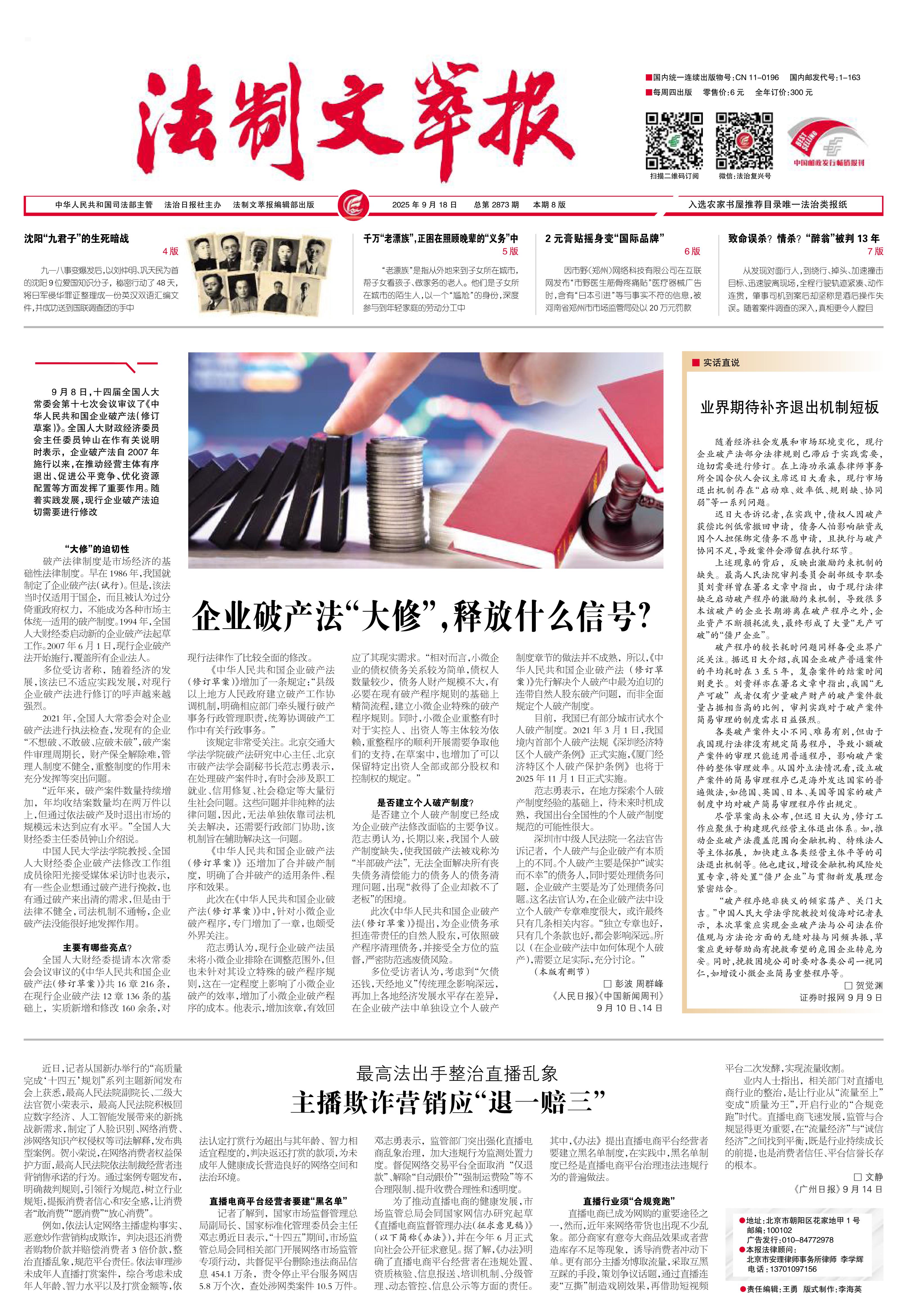 2025年9月18日《法制文萃報》總第2873期1版