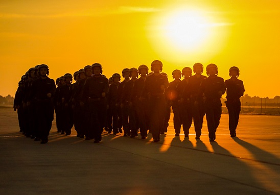 圖為2019年7月,空軍”模范轟炸機(jī)大隊(duì)“飛行員走向訓(xùn)練場(chǎng)。賁道春 攝