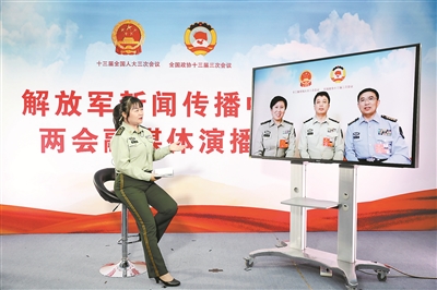 本報記者吳敏通過視頻連線方式采訪軍隊(duì)人大代表。蘇鶴 攝