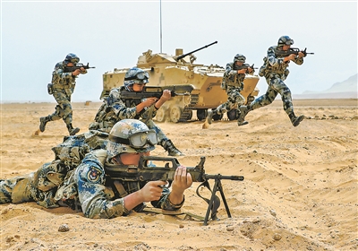 6月1日,空降兵某旅組織的一場實(shí)戰(zhàn)背景下空降機(jī)步營戰(zhàn)術(shù)演練,在西北大漠腹地激烈進(jìn)行。面對(duì)復(fù)雜“敵情”,營指揮員沉著研判態(tài)勢(shì),果斷調(diào)整兵力部署,指揮部隊(duì)采取靈活戰(zhàn)術(shù),向“敵”陣地發(fā)起突擊。