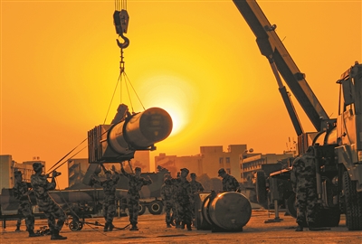 圖④:官兵精準(zhǔn)吊裝導(dǎo)彈。
