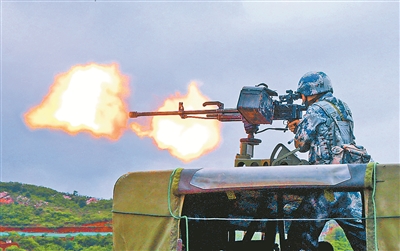 圖②:重機(jī)槍對(duì)“敵”實(shí)施火力壓制。