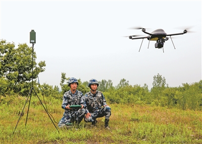 圖④:偵察分隊(duì)操縱無(wú)人機(jī)實(shí)施偵察。