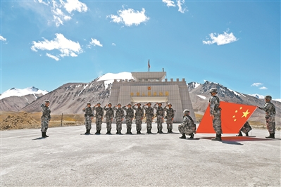 守邊戰(zhàn)士面向國(guó)旗莊嚴(yán)宣誓