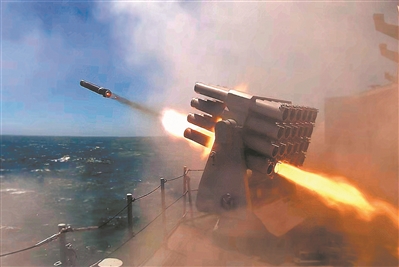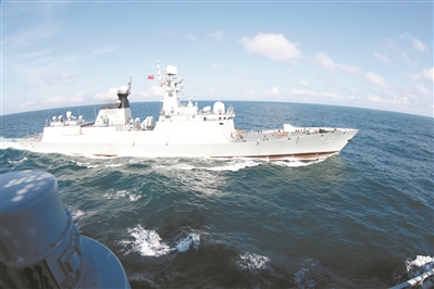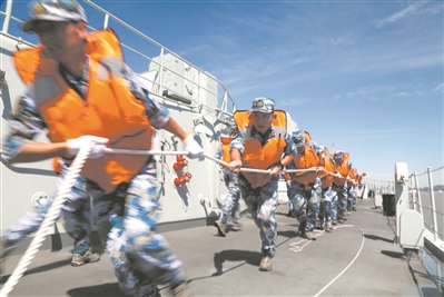 演訓不避險,緊貼實戰(zhàn)練。幾天時間里,編隊訓練全程融入戰(zhàn)術(shù)背景,立足實戰(zhàn)需要,先后完成主炮對海射擊、副炮對空射擊、實射火箭深彈、編隊航行補給占位、營救落水人員等20多個課目訓練。