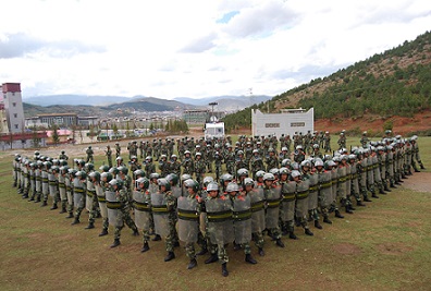 圖為2010年機(jī)動(dòng)一中隊(duì)在香格里拉組織誓師大會(huì)。