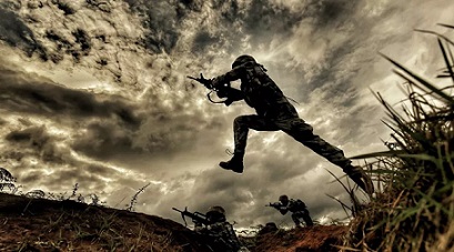 擔(dān)負(fù)尖刀任務(wù)的一大隊(duì)機(jī)動(dòng)一中隊(duì)剛出營(yíng)地就遭遇小股“敵人”襲擾,中隊(duì)長(zhǎng)王學(xué)海一聲令下,官兵們迅速成多路戰(zhàn)斗隊(duì)形,利用夜幕掩護(hù)前出接敵,展開(kāi)激烈交火。短短10分鐘,王學(xué)海連續(xù)下達(dá)20余組戰(zhàn)斗命令,成功抵御了“藍(lán)軍”襲擾。