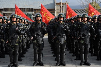 圖為2014年機(jī)動(dòng)一中隊(duì)組織開(kāi)展防暴處突訓(xùn)練。