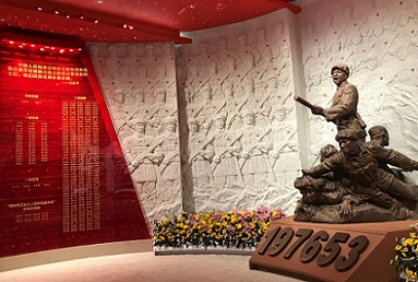 “最可愛的人”專題區(qū)里有一座英雄雕像,下面刻著“197653”。這是197653名犧牲在抗美援朝戰(zhàn)場上的“最可愛的人”。