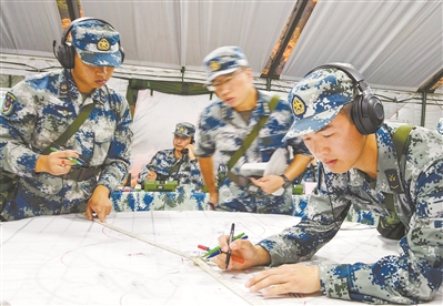 操作方艙內(nèi),各號手屏氣凝神,一串串口令清晰有力?!鞍l(fā)現(xiàn)目標,方位××,距離××!”就在準備上報射擊決心時,“敵”機突然釋放強電磁干擾,對地面雷達進行壓制,屏幕上的目標瞬間消失。面對“敵”機使出的招數(shù),指揮員陳代果斷下令實施反干擾。操縱員快速反應,目標重現(xiàn)在顯示屏上。
