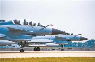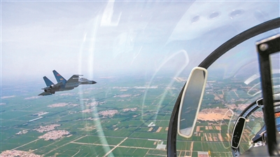 “發(fā)現(xiàn)目標(biāo),按攻擊隊(duì)形攔截!”正在某空域巡邏的長(zhǎng)機(jī)飛行員殷凡明發(fā)現(xiàn)“敵”機(jī),迅速協(xié)同僚機(jī)飛行員張瑋前出攔截,一場(chǎng)空中戰(zhàn)斗隨即打響。