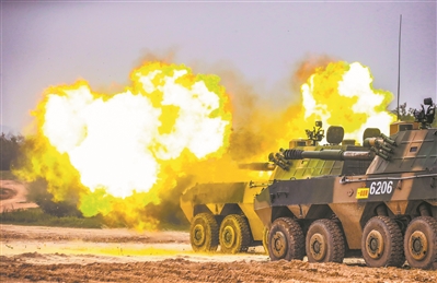 紅方偵察分隊(duì)抵近藍(lán)方前沿陣地,迅速傳回“敵情”。指揮所果斷下令,指揮炮兵分隊(duì)、電子對(duì)抗分隊(duì)、陸航火力和步兵突擊車攻擊群打出一套“組合拳”,對(duì)藍(lán)方陣地實(shí)施猛烈攻擊?;鹆Υ驌暨^后,藍(lán)方殘余力量依托有利地形負(fù)隅頑抗。抓住時(shí)機(jī),紅方前沿突擊隊(duì)順勢(shì)展開強(qiáng)攻,在藍(lán)方火力封鎖區(qū)“撕”開一個(gè)突破口,成功占領(lǐng)陣地。