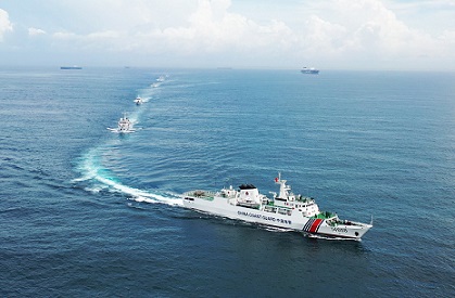 圖為海警艦艇編隊對轄區(qū)重點海域實施常態(tài)巡查。曾文 攝