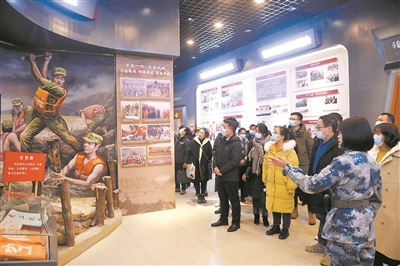 12月25日,空降兵某旅與駐地高校聯(lián)合開展軍事日活動。一大批高校輔導(dǎo)員走進(jìn)軍營,通過參觀旅史館、觀摩官兵訓(xùn)練等活動,增強(qiáng)了國防意識和愛國擁軍的熱情。圖為旅史館講解員為大家講述該旅參加’98抗洪的故事。陳崢 攝